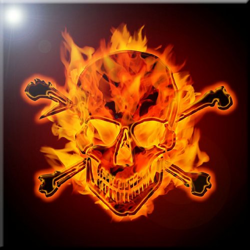 Rikki Knight RK-12intilec-1764 12" X 12" Burning Metallic Skull & Crossbones Design Ceramic Art Tile