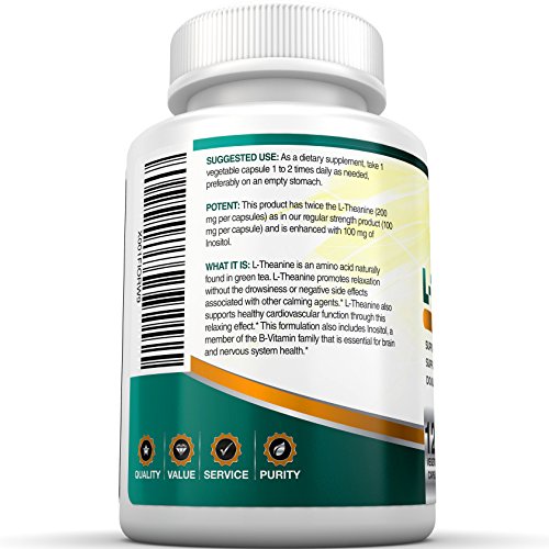 ★WHY US: We looked at all other Theanine supplements on the market and were surprised by the low capsule count or the use of gelatin (dead cow), yuck! We decided we should source the finest ingredients and sell them at a reasonable price. L-theanine is a amino acid (found in green and black tea) which creates a calm feeling of energy and alertness without any jitters or side effects.
