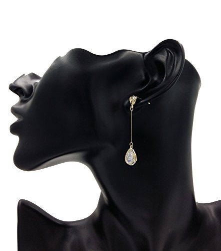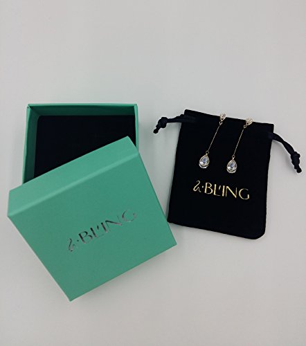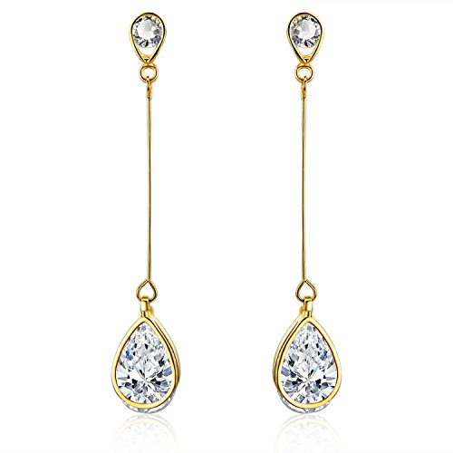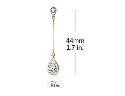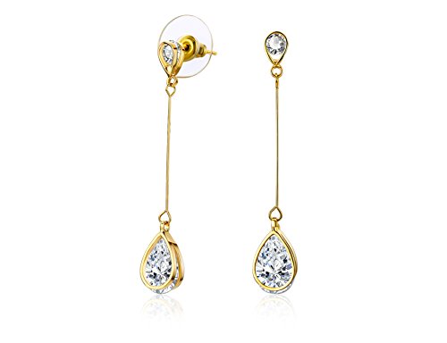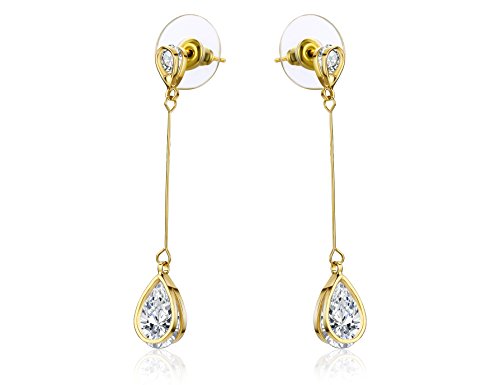 -. Feature : 18K Gold Plated drop earrings featuring sparkling 2 pcs Cubic Zirconia stones / 3.9 carats Cubic Zirconia reveals brilliant shine and a meticulous cut / Delicate post with hypo allergenic bullet clutch earring backs with pad, gold tone / High polish & Hypoallergenic / Delicate Gift Box included