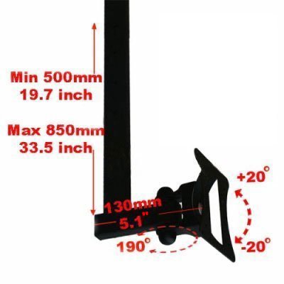 -. Feature : Fits most 15" 17" 19" 20" 22" 23" 24" 26" 27" LCD monitor flat panel screen TVs (check VESA and weight) / Fits TVs VESA 50x50/75x75/100mmx100mm compliant,Load capacity up to 66 lbs / Tilt up and down 20 degrees and swivel +/-90 degrees,Integrated cable management / Telescopic pole drops from 20 in up to 34 in (500mm - 850 mm) from ceiling / Ceiling plate dimensions 3.5 in x 8.5 in (90mm x 215mm),Standard screws to screen or to the ceiling included