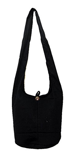 -. Brand : Pada Craft Shop -. Color : Black -. Department : womens -. EAN : 1000283558372 -. Feature : 100% Cotton with Plain Black color. / Main Zip closure and Wood button closure. / Small pocket with zip inside and Liner inside. / Strap Drop : 23 inch (58 cm.) / Medium size - Height & Length : 11 inch x 14 inch (27 cm. x 37 cm.) -. PackageQuantity : 1 -. ProductGroup : Shoes -. ProductTypeName : HANDBAG -. Size : Medium -. Title : Thai Hippie Hobo Sling Crossbody Shoulder Bag Purse Handmade Zip Plain Black Cotton Gypsy Boho Messenger Medium M721