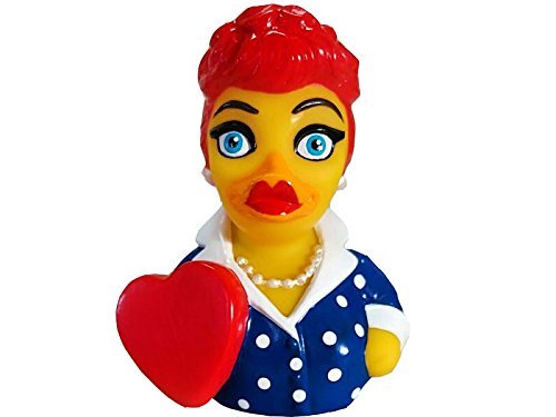 "Duuuucky! You've got some 'splainin to do!". This iconic CelebriDuck celebrates one of America's classic female comedians ! She's a collectible and limited edition piece of toy art. Our highly detailed and premium quality ducky is full 'rubber ducky' sized, 4.5 inches tall and 3.75 inches long. This unsinkable bath toy is completely sealed to stay clean, and weighted to always float upright. CelebriDucks are made from safe phthalate free and lead free vinyl. Whether you're relaxing in a nice warm bath or chilling out by a cool pool, your CelebriDucks ducky will always bring a smile to your face!Feature