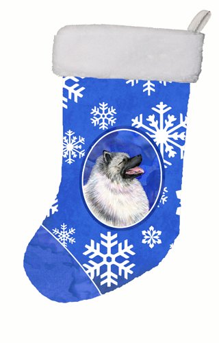 Caroline's Treasures Keeshond Winter Snowflakes Christmas Stocking, 11 x 18", Multicolor