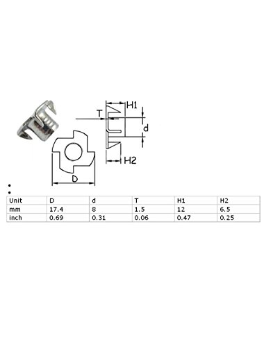 uxcell 50Pcs 4 Prongs Zinc Plated T-Nut Tee Nut Fixing M6 x 12mm