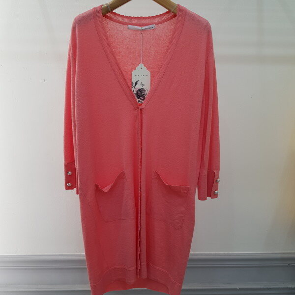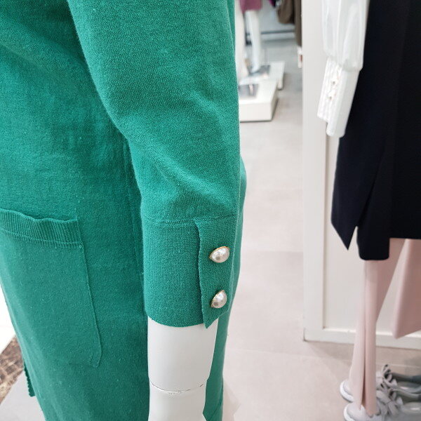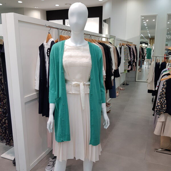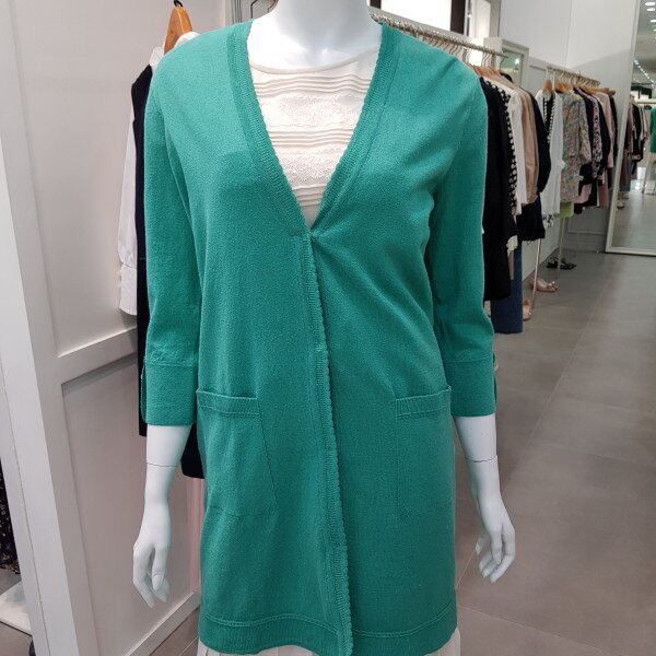 린넨,나일론 혼용의 수입사를 사용한 가디건.기본 실루엣에 소매 장식단추로 포인트를 준 스타일