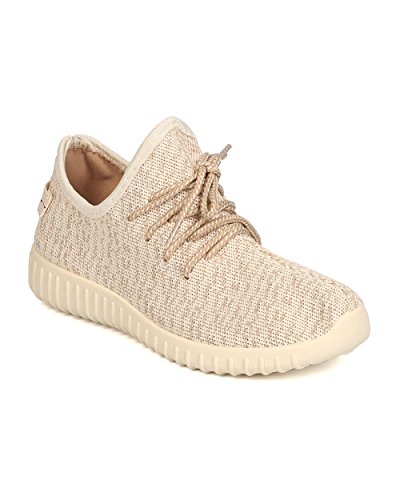 Women Knitted Lace Up Jogger - Casual, Gym, Exercise - Fabric Running Sneaker - GC38 By Wild Diva