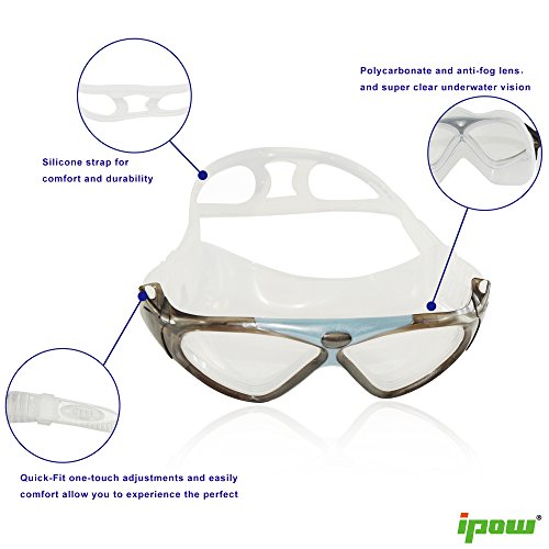 Ipow Seal Swim Mask Anti-Fog Watertight Large Clear Lens Waterproof Eyes Protection Adult Swimming Goggles With Quick-Fit Buckle Adjustable Strap For men and Women
