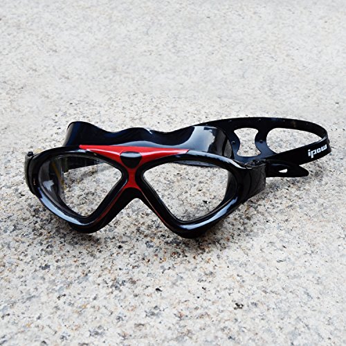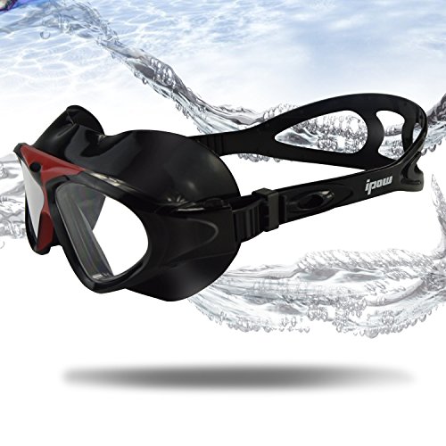 Ipow Seal Swim Mask Anti-Fog Watertight Large Clear Lens Waterproof Eyes Protection Adult Swimming Goggles With Quick-Fit Buckle Adjustable Strap For men and Women (black)