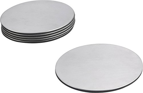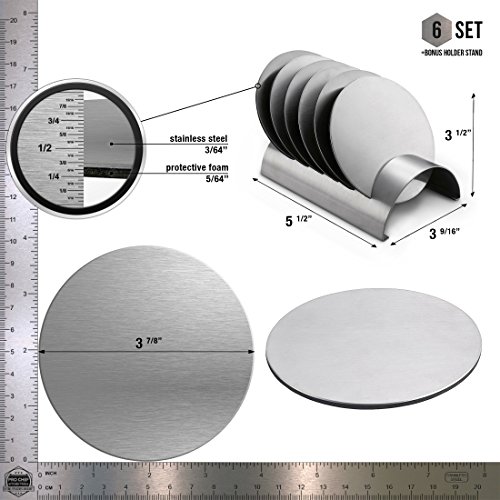 Stainless Steel Drink Coaster Set - Prevent Stains and Scratches with 6 Round Table Coasters for Glasses, Bar Drinks, Mugs, Coffee Cups, Tea, Wine, Beverages by Pro Chef Kitchen Tools