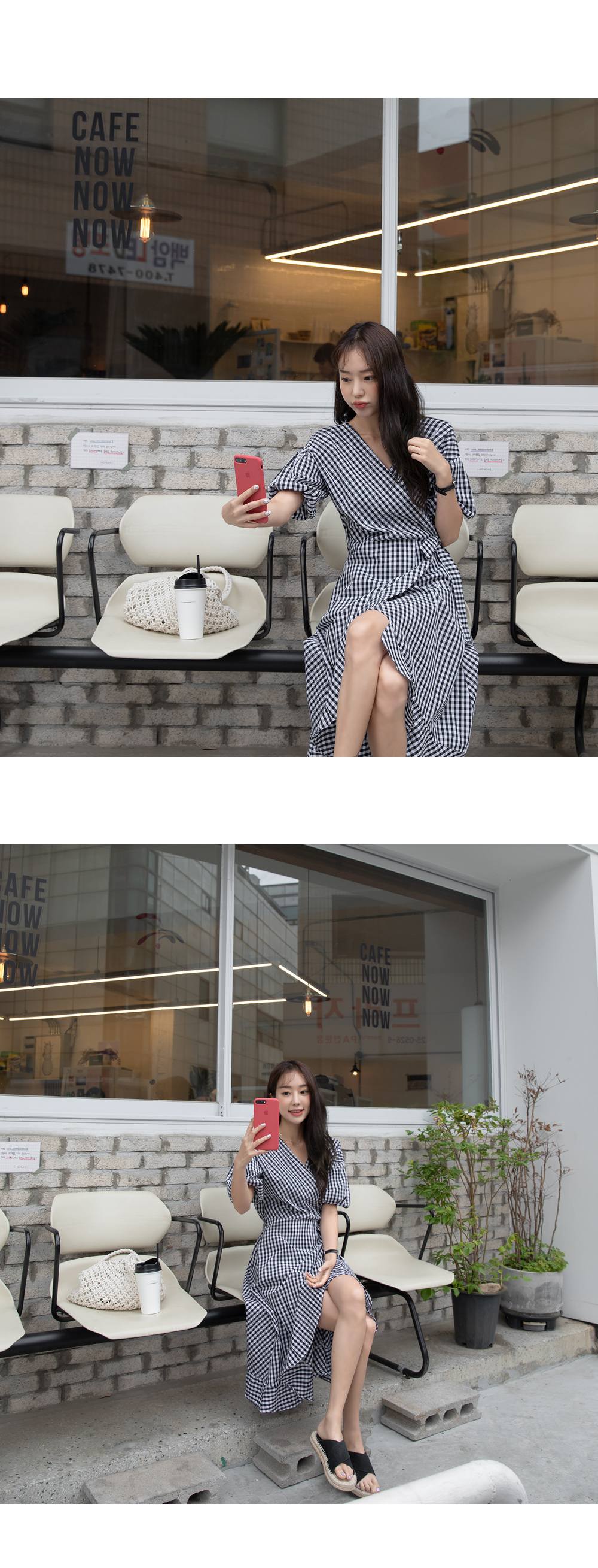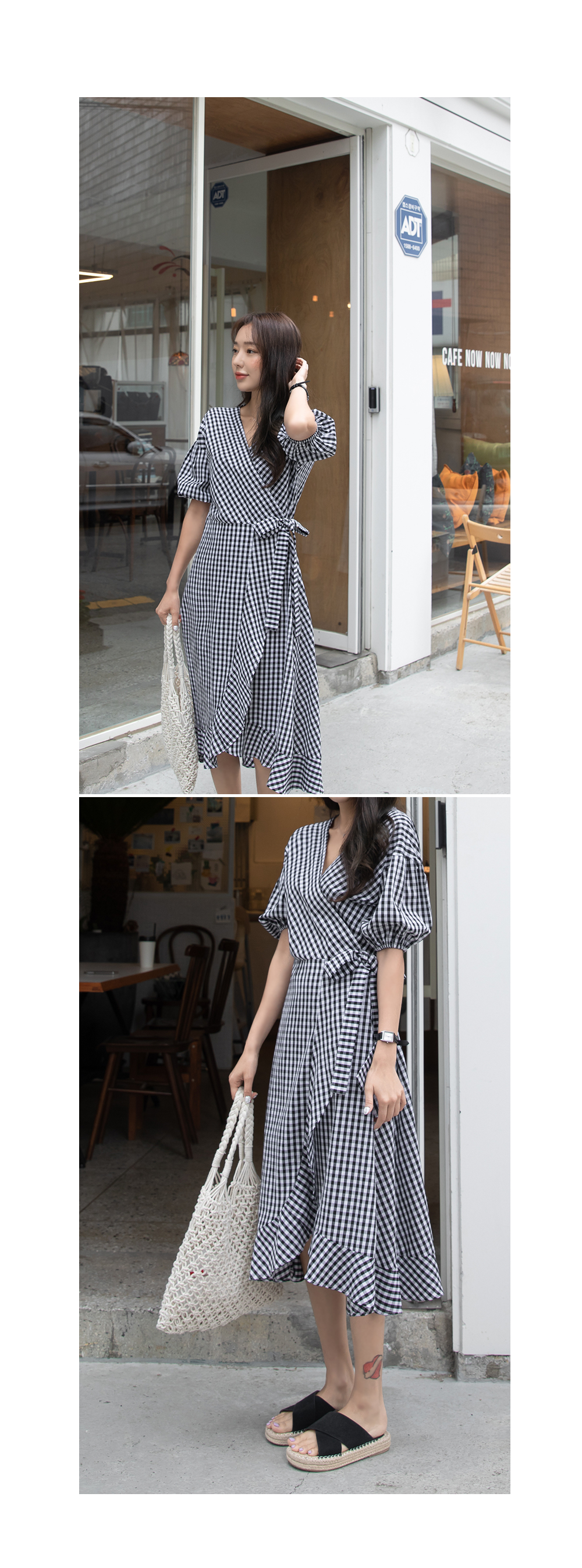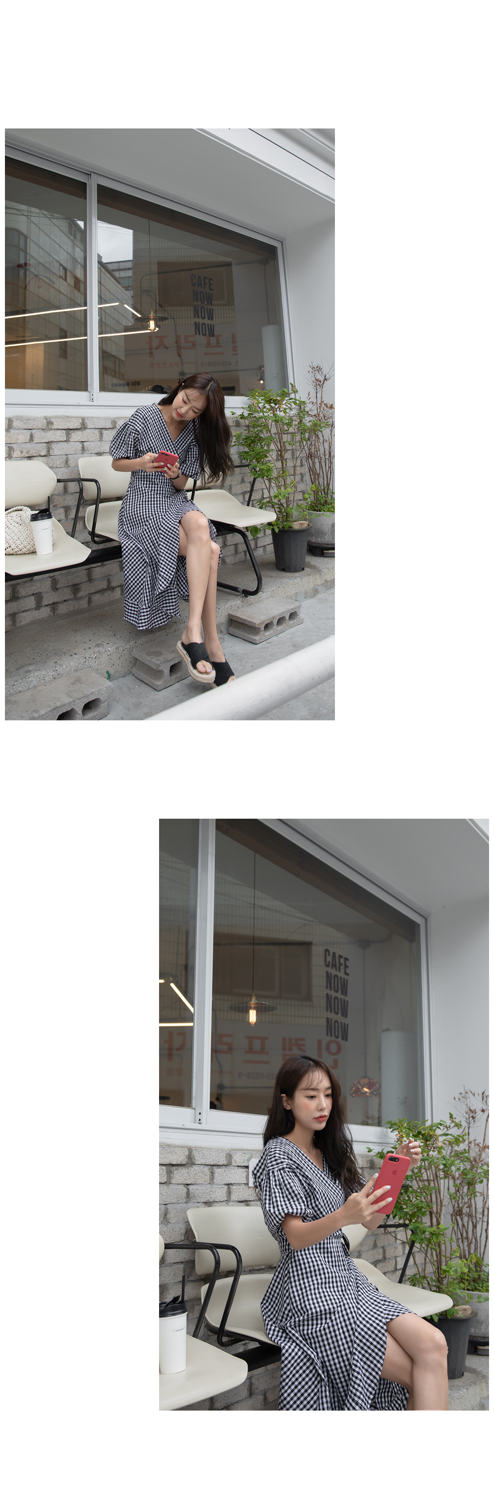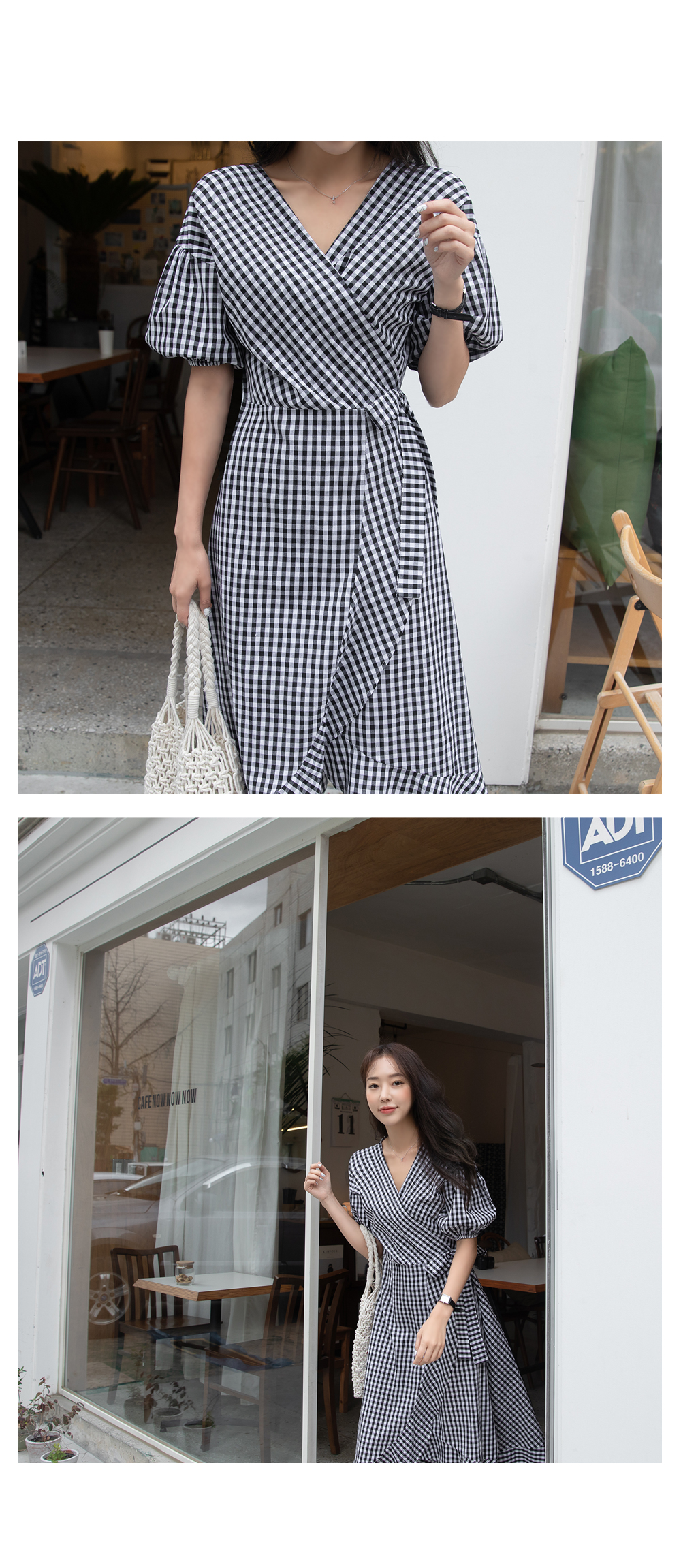 여성스러운 실루엣의 체크 랩원피스를 소개할게요:)