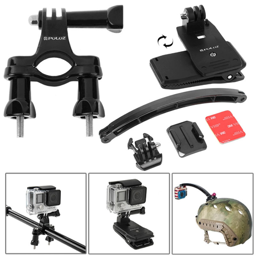 ●自転車のハンドルバーやフレーム、さらにウィンタースポーツやマリンスポーツなどでも使えるパイプマウントと、ヘルメットや車体に強力接着できるヘルメットマウントアームキット、強力なスプリングでバックのストラップや衣服にカメラを取り付けられるクリップなど、装着系アイテムが計6点!