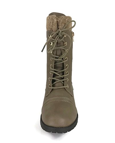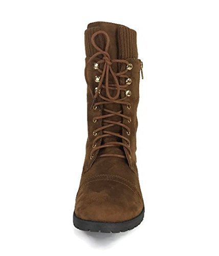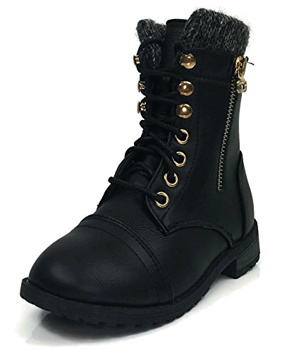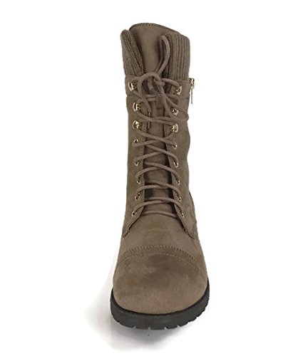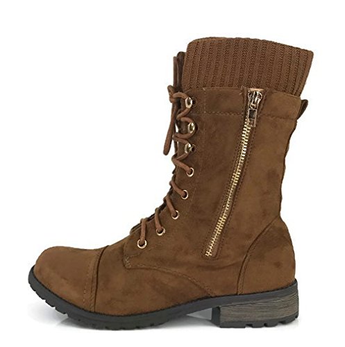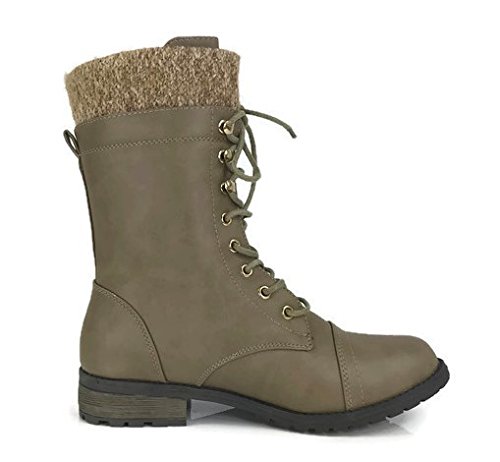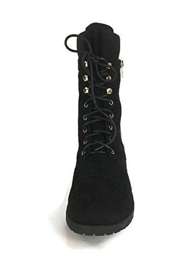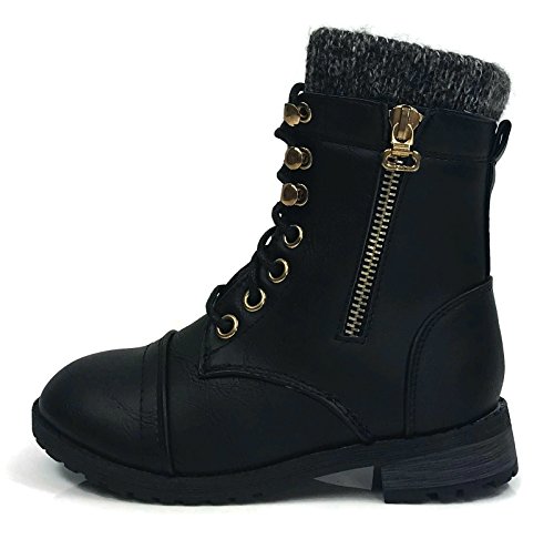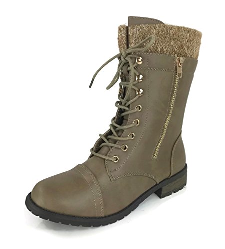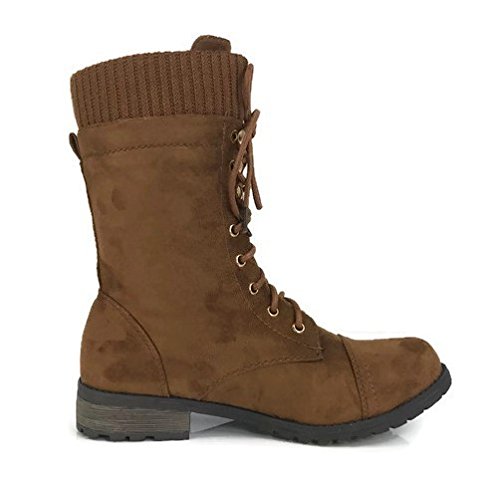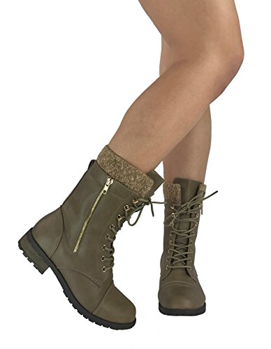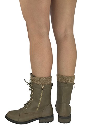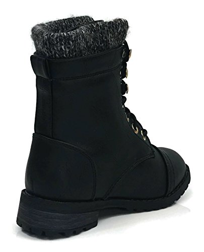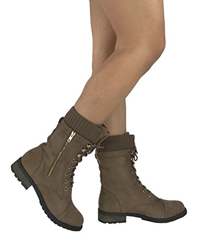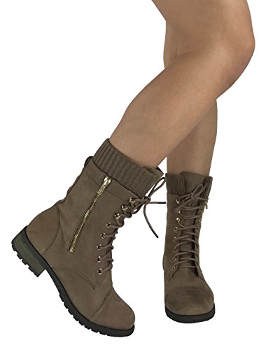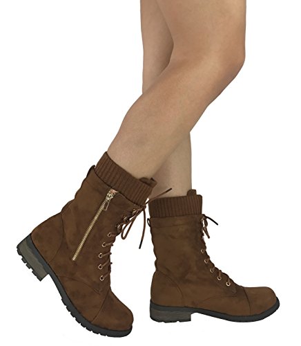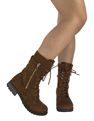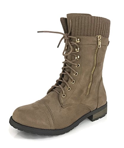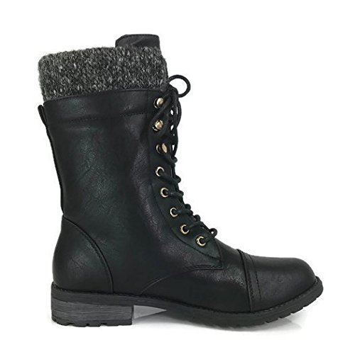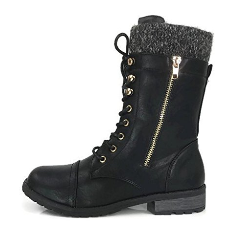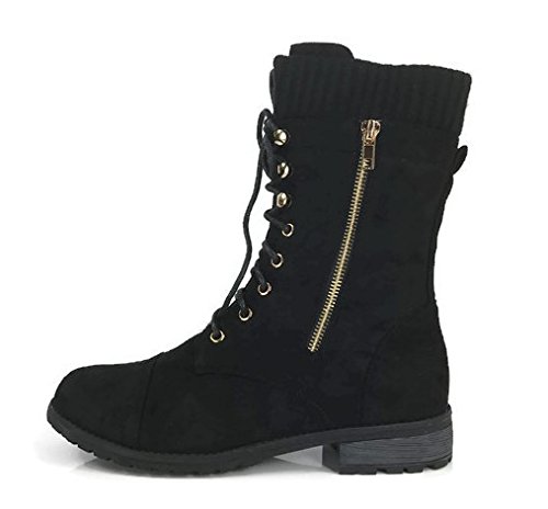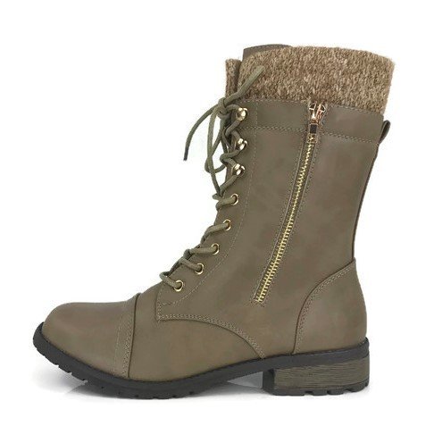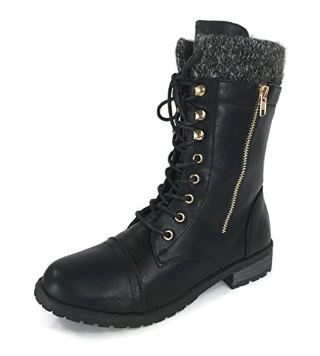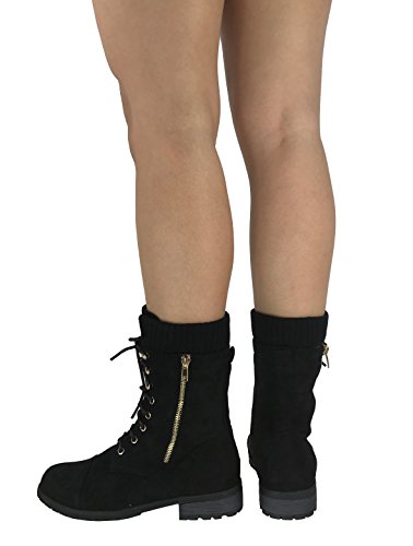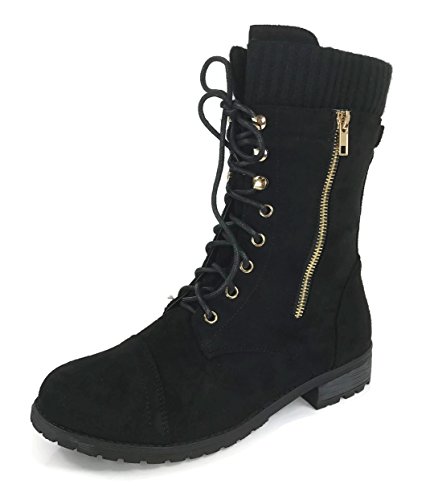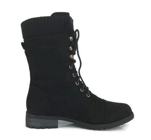 Product Description These stylish booties made of quality faux leather and faux suede are great for cold weather. With a sweater cuff, these offer an updated combat boot fashion look. Ankle boots with a flat low heel so they can be worn comfortably all day! Great for cold weather in the fall or winter. Use for work or play!! Jeans, skirts, slacks, or shorts - these will add stylish accents to your wardrobe. 0
