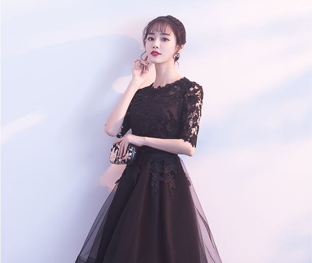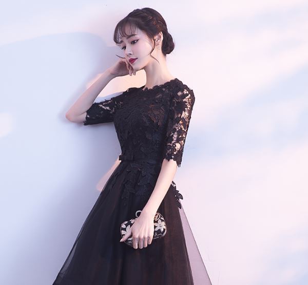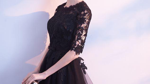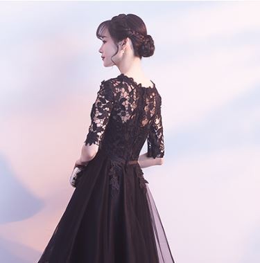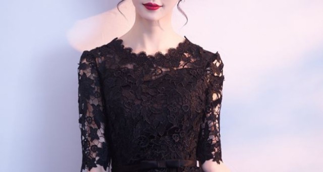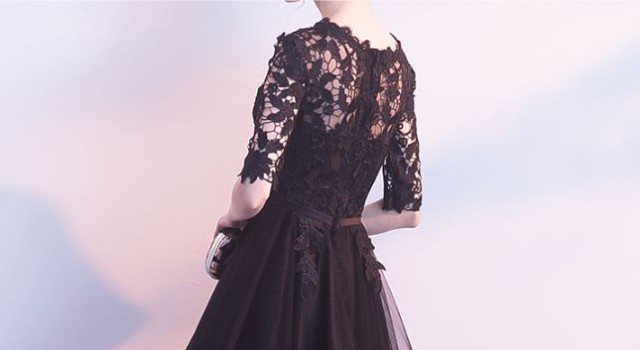 透け感のあるレース使いが華やかなロングドレスです。