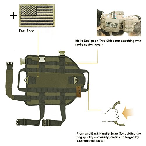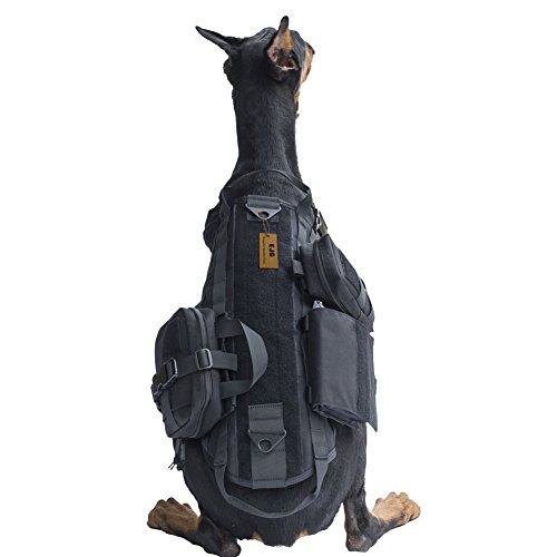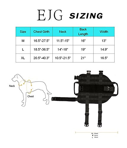 -. Title : EJG Military Tactical Service Dog Training Vest Molle Dog Harness Camping Hiking Traveling Nylon Adjustable Coat with 3 Detachable Pouches For Medium & Large Dog