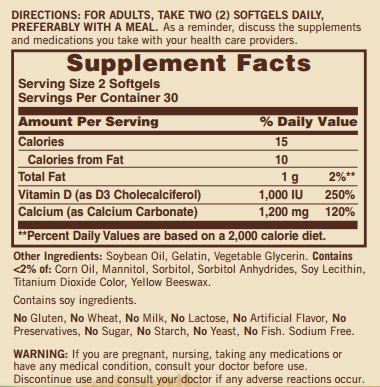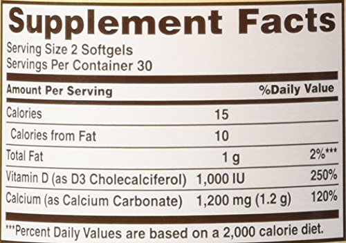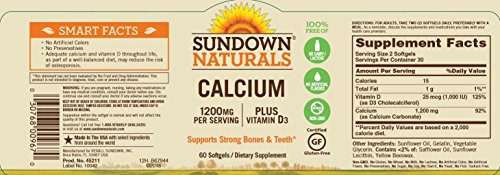 -. Title : Sundown Naturals Calcium 1200mg Plus Vitamin D, 60 Softgels (Pack of 2) Total 120 Softgels