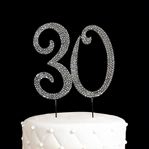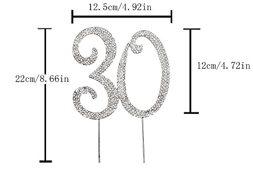 30 Cake Topper for 30 Years Birthday Or 30TH Wedding Anniversary Gold Crystal Rhinestone Party Decoration (Gold)