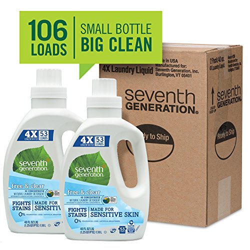 Seventh Generation Natural Laundry Detergent Free and Clear Unscented 106 loads (2pk 40oz ea)