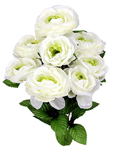Admired By Nature 8 Stems Artificial Full Blooming Ranunculus for Home, Wedding, Restaurant & Office Decoration Arrangement, Cream, 2 Pieces