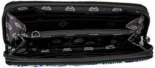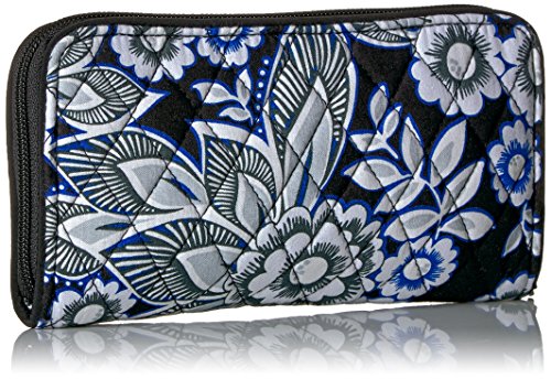 Signature cotton is colorful, lightweight and packable. Provides rfid protection for credit and debit cards. Eight credit card slips, id window and two large bill pockets. Zip coin compartment. Zip closure.