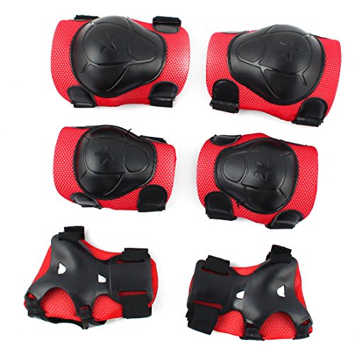 -. Title : uxcell Cycling Inline Roller Skating Wrist Elbow Knee Support Safety Pad Guard Protector 6 in 1 Set Red Black