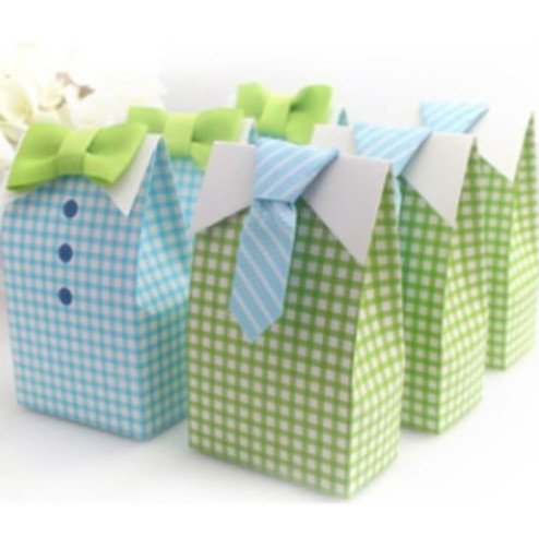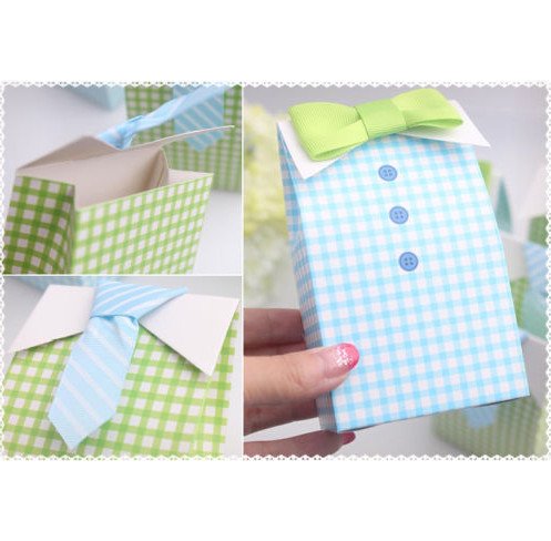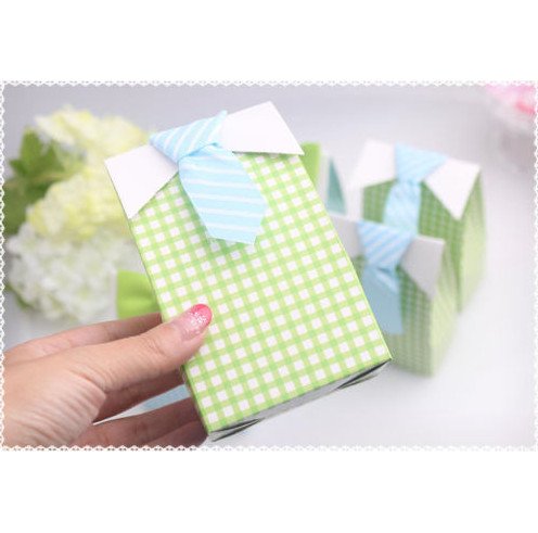 CXLKST 50 Pcs Plaid Candy Box For Wedding Favor Engage Party (25 Blue + 25 Green) Paper