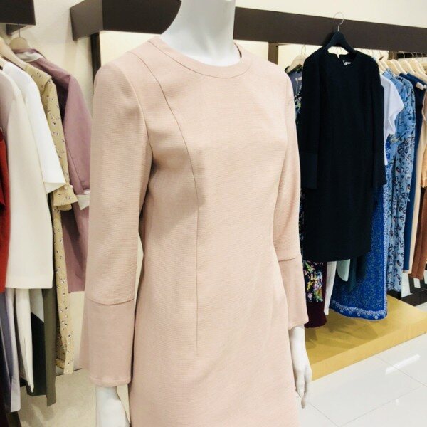 라운드넥라인의 기본스타일의 여성스러운 원피스입니다