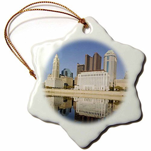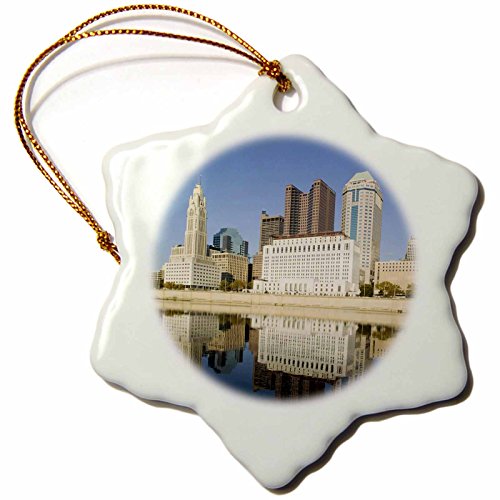 3dRose orn_94141_1 Ohio, Columbus City Skyline Along Sciotto River US38 WBI0196 Walter Bibikow Snowflake Porcelain Ornament, 3-Inch