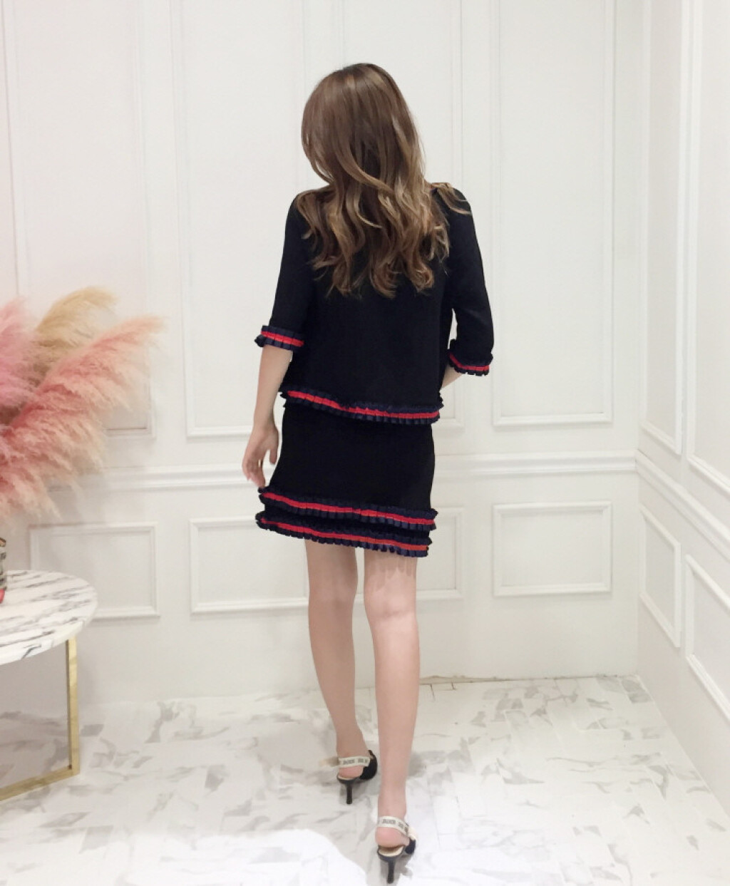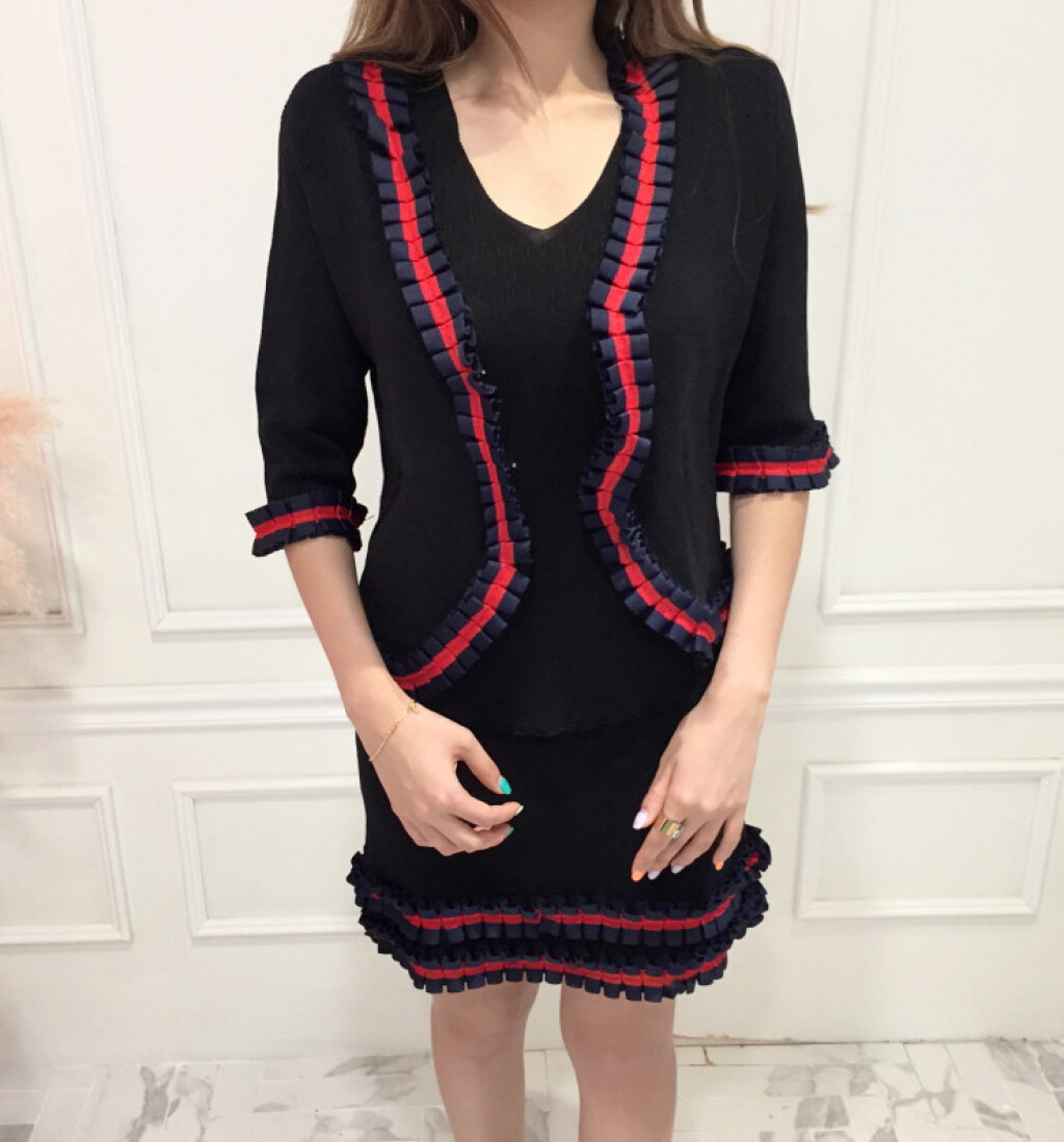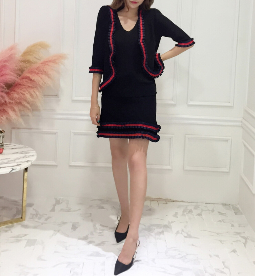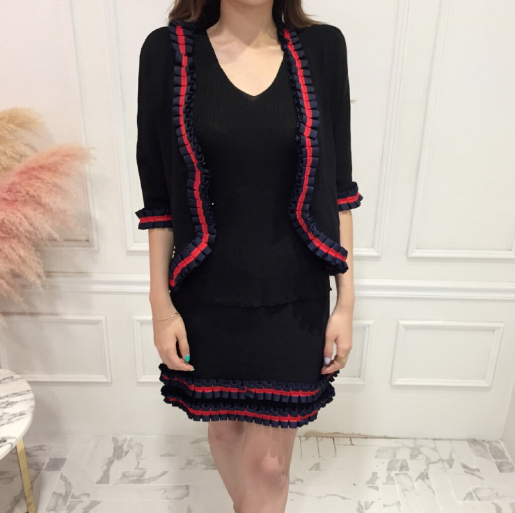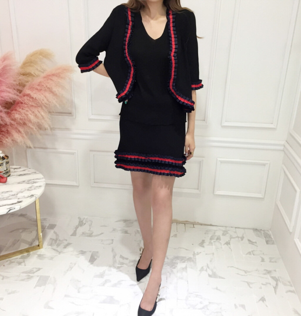 블랙 바탕에 레드라인으로 프릴이