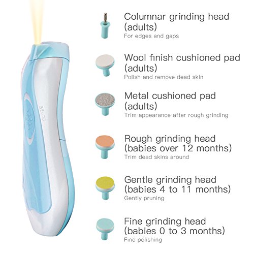 Specific description of products:? A Portable High Quality Safer Noiseless Nail Clippers For Babies And Adults, Equipped With Soft LED front light; Method of application:? Pressing the "0"open and off button; Changing rotary according specific purpose. 4-speed switch? Replaceable filing discs available? Plastic Battery Require:? 2 AA battery (not included)? Item Weight:?5.32oz / 152g? Shipping Weight:?6.37oz / 182g? Package Size:?62.99*35.4*21.65in / 160*90*55cm Package list:? -A baby nail clipper? -6 different grinding heads? -A handy carrying case and stand 1-year manufacturer's warranty 0 |