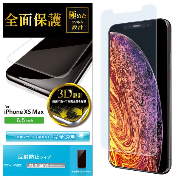 ●専用ヘラ付きで貼りつけやすく、液晶画面をしっかり守る反射防止タイプのiPhone XS Max用液晶保護フィルムです。