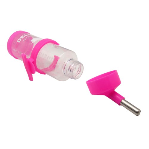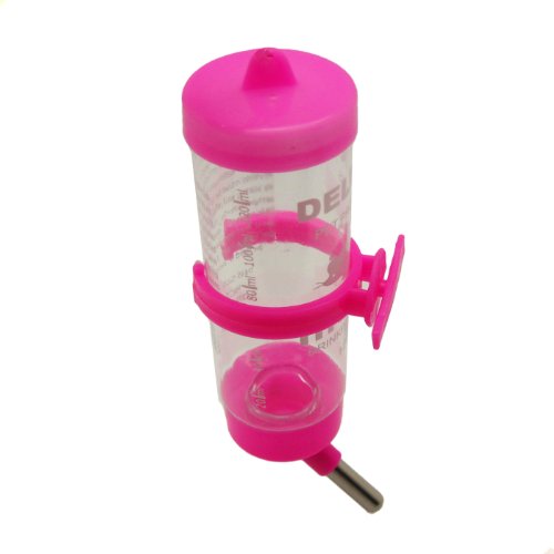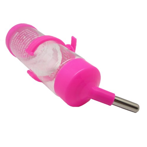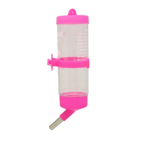No-drip water bottle, ideal for rabbits, ferrets, birds, guinea pigs and other small animals. Transparent, wide-mouth plastic bottle with large ball-point tube cap assembly. Easy to install, fill and clean. Heavy duty hanger safely secures the water bottle to any small animal cage. 0