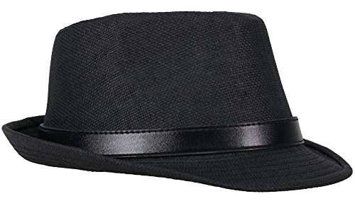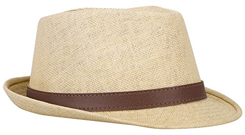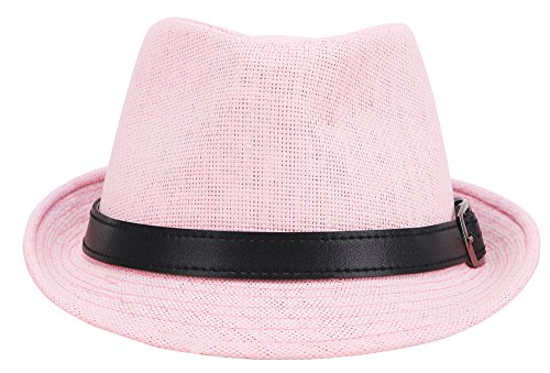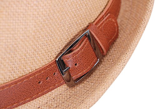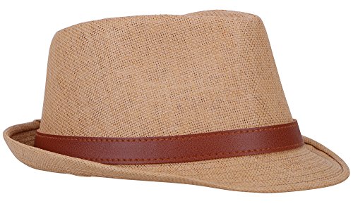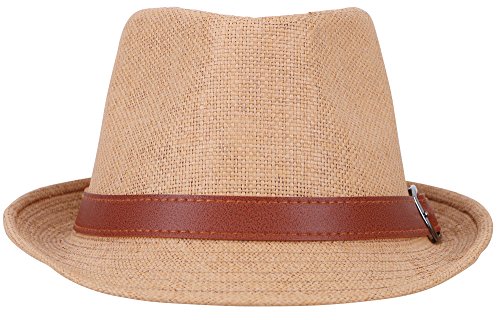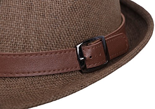 | Hemantal Men Women's Miami Structured Straw Fedora Hat w/PU Leather Band |