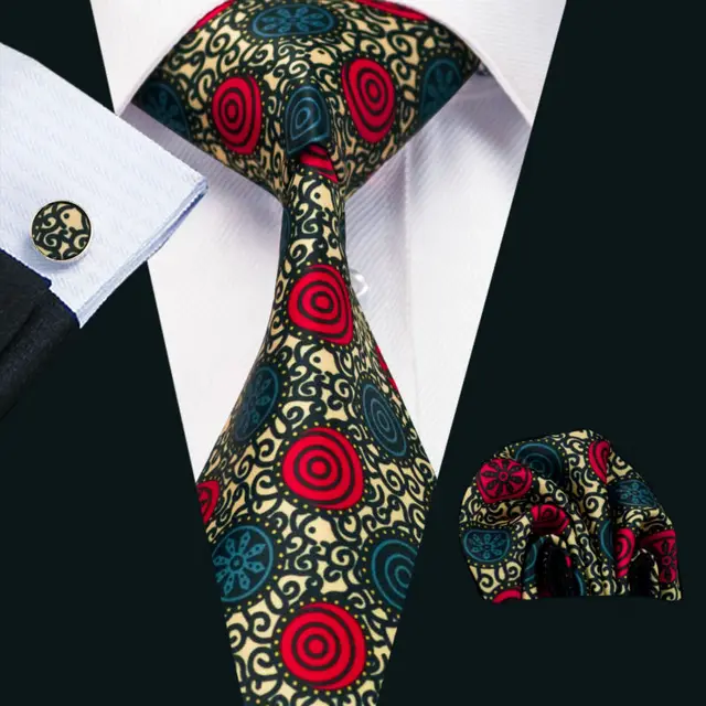 LS-1231 새로운 Arrivial 패션 코튼 남성 고품질 브랜드 디자인 넥타이 손수건 커프스 세트 웨딩 파티