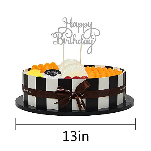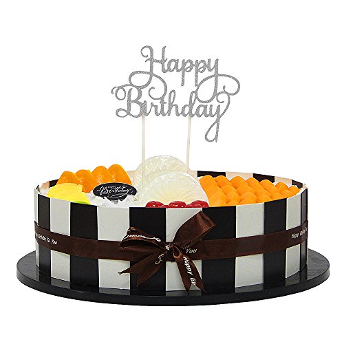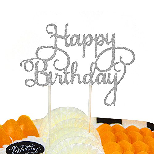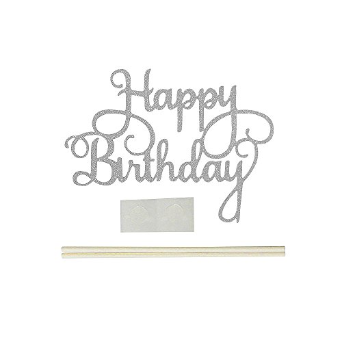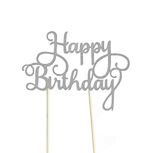 PALASASA Happy Birthday Cake Toppers. Sparkling Silver Glittery Birthday Cupcake Picks. Birthday Party Decorations