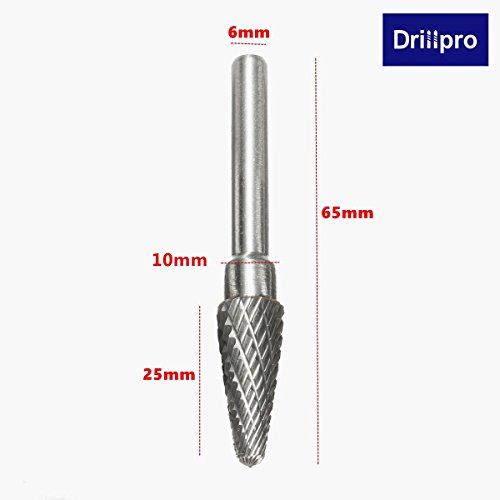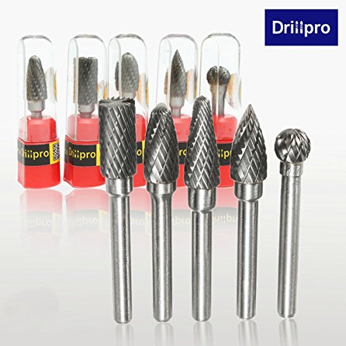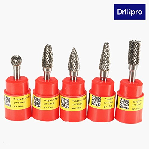 Drillpro 5pcs x 1/4'' Head Tungsten Carbide Rotary Point Burrs Die Grinder 6mm Shank Cutter