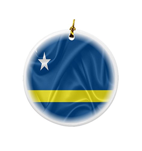 Rikki Knight Curacao Flag Design Round Porcelain Two-Sided Christmas Ornaments