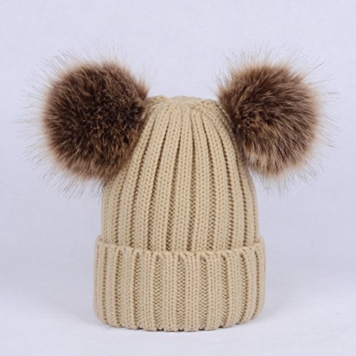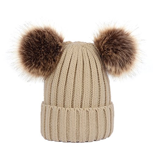 Package Including 1 x Winter Knit Beanie Bobble Hat Cap with Double Pom Pom Ears for Women Girls (Khaki) 0