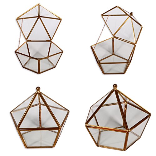 -. Title : WANYA Decorative Pentagon Glass Box for Plant Jewelry Display with Hinged Top Lid