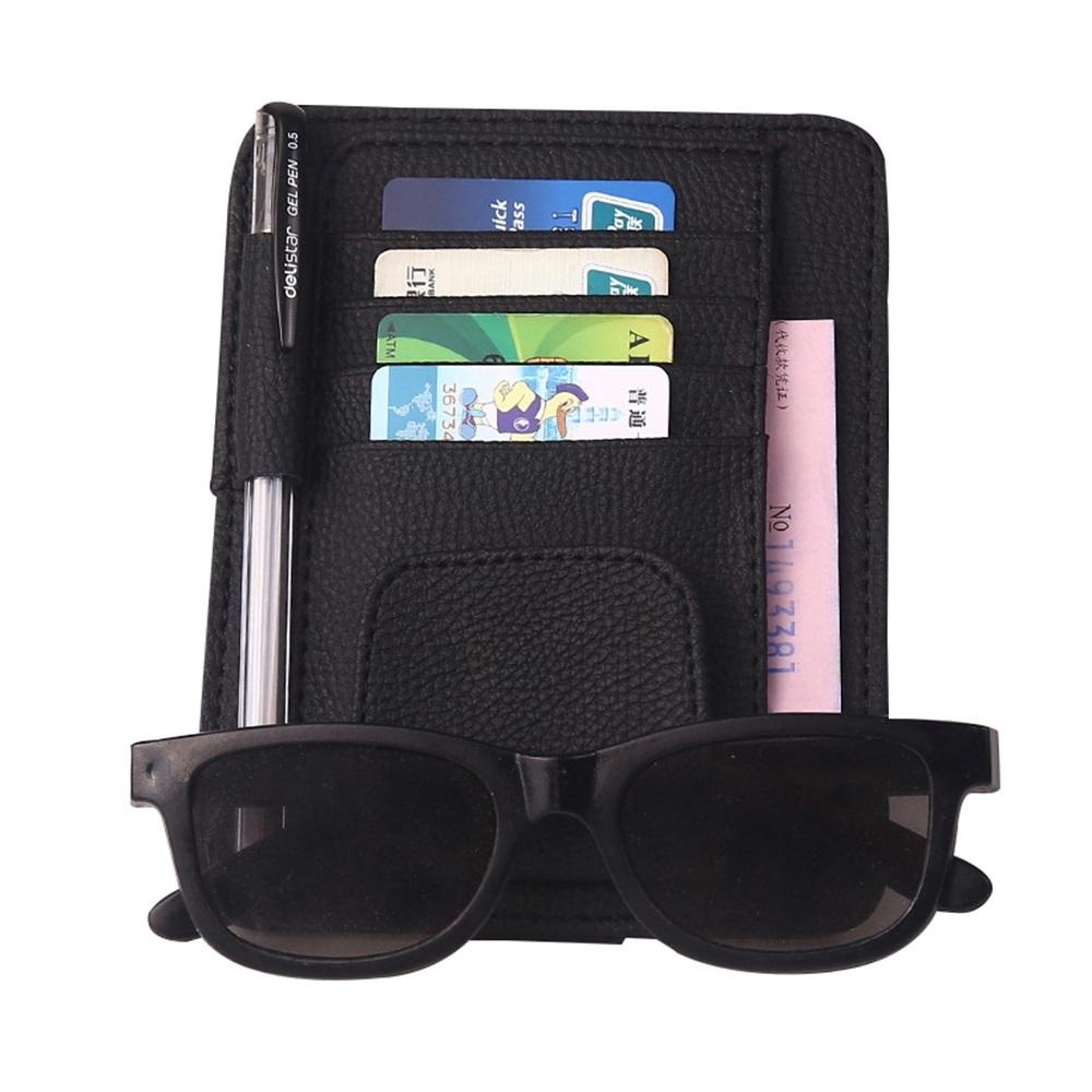 - 3 in 1 Car Visor Organizer - 4 card slots for various cards, 1 sunglasses holder, 1 pen holder and 1 inside pocket for store bills