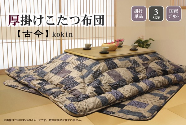 【商品名】国内プリント こたつ厚掛け布団 こたつ布団 単品 『古今』 205×245cm(裏地:フランネル)