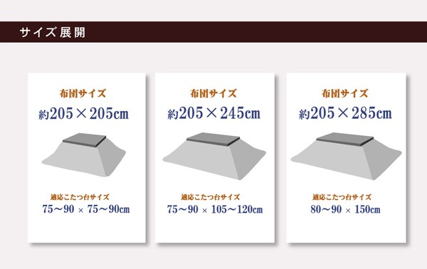 75~90×105~120cm幅のこたつ台に適応