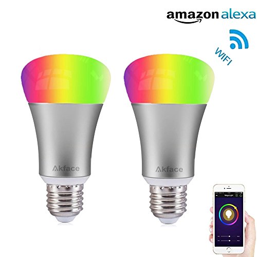 Akface WiFi Smart A19 LED Light Bulb, Dimmable Multicolored Color, for iOS Android (iPhone iPad ,Samsung LG), 2 Pcs