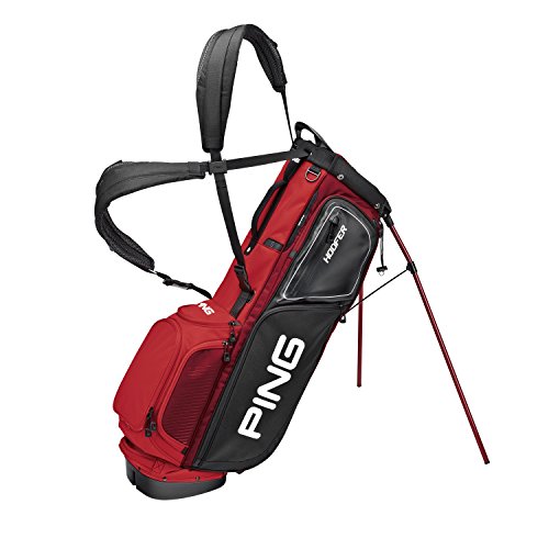 Stylish and strong, whether it's carried or carted, the all-purpose hoofer bag ensures walking comfort with practical features like easy-adjusting, dual sliding shoulder straps. A deployable rain hood attached inside the cushioned hip pad keeps clubs protected.Feature