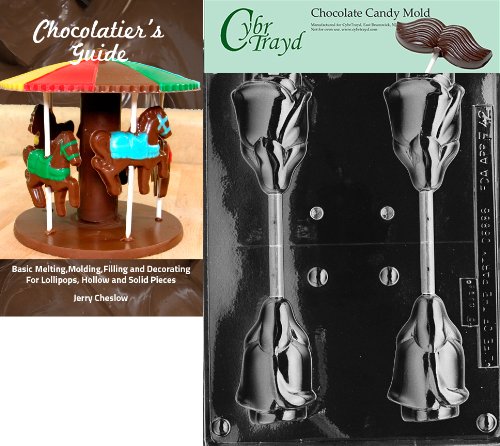 Cybrtrayd "Large 3D Rose Lolly" Fruits and Vegetables Chocolate Candy Mold with Chocolatier's Guide