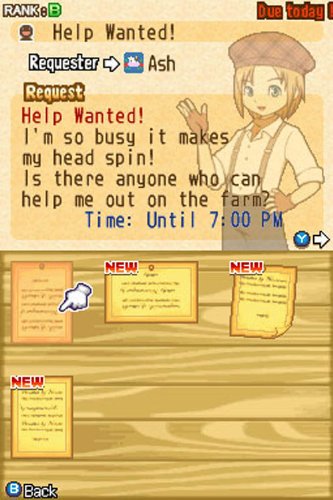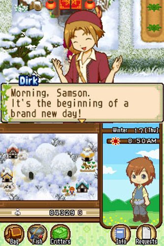 -. Feature : Choose to play as a boy or as a girl! / Choose from two different villages, each with their own shops, villagers, and festivals! / Grow crops, raise livestock, woo a spouse, and start a family! / Classic Harvest Moon Life Simulation RPG gameplay for Nintendo DS revolving around farming, animal husbandry and starting a family / New animal the alpaca / Visit your friends' fields using local wireless or Nintendo Wi-Fi Connection / New activities like: horse and cart functionality to haul items, festival competitions and mining and fishing for in-game profit / In-game message board feature at which you can receive tasks done for townsfolk