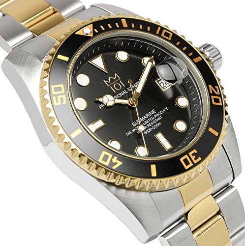 -. Title : [HYAKUICHI 101] ヒャクイチ ダイバーズ 20気圧防水 腕時計 ウォッチ デイト 逆回転防止ベゼル ギフト プレゼント ブラック×ゴールド