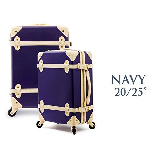 -. Title : 25" EDDAS Navy Lage Spinner Wheel Vintage Hard Shell Suitcase EV501