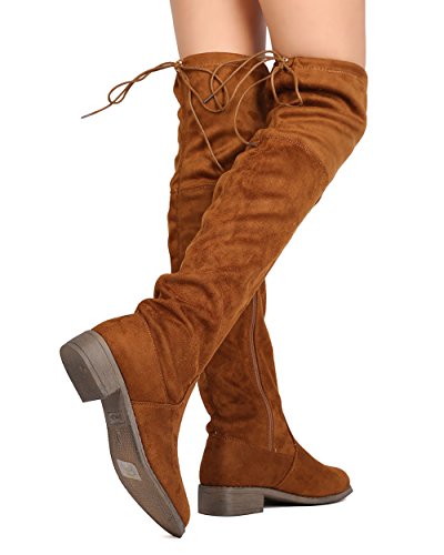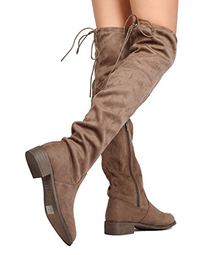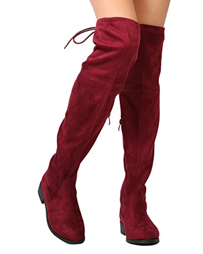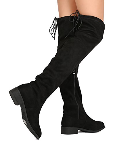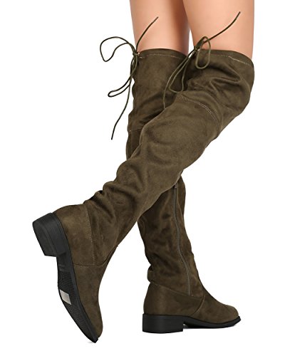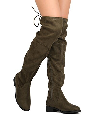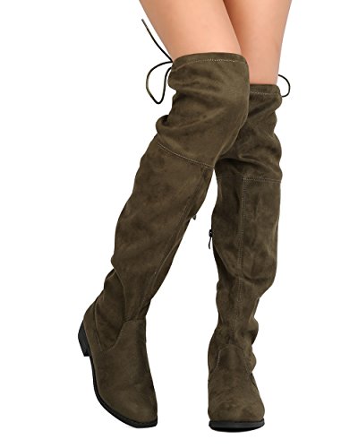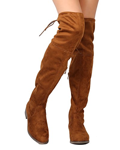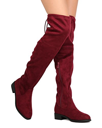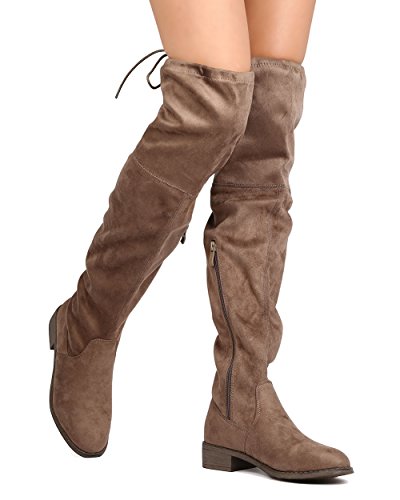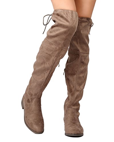 Nature Breeze FF72 Women Faux Suede Thigh High Drawstring Riding Boot