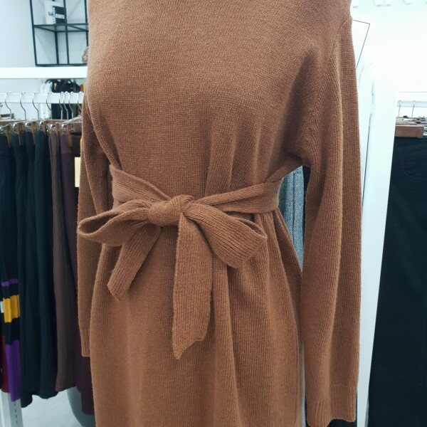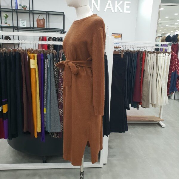탈착가능한 벨트로 일반핏,슬림핏 연출가능하며앵클부츠나 편안한 스니커즈에 멋스럽게 코디하기좋은 라운드넥 니트원피스