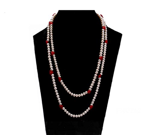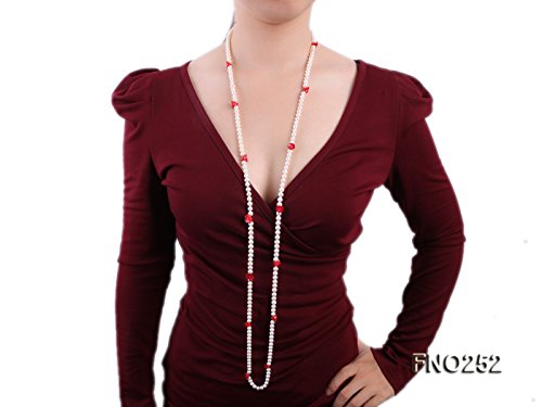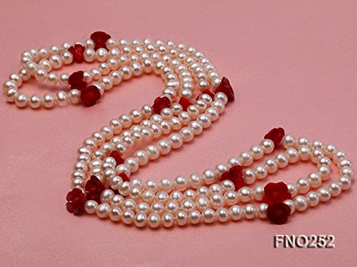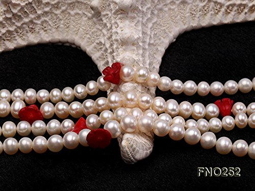 Description *You are looking at a freshwater cultured pearl necklace features 6-7mm white round pearls and dotted with red coral beads.